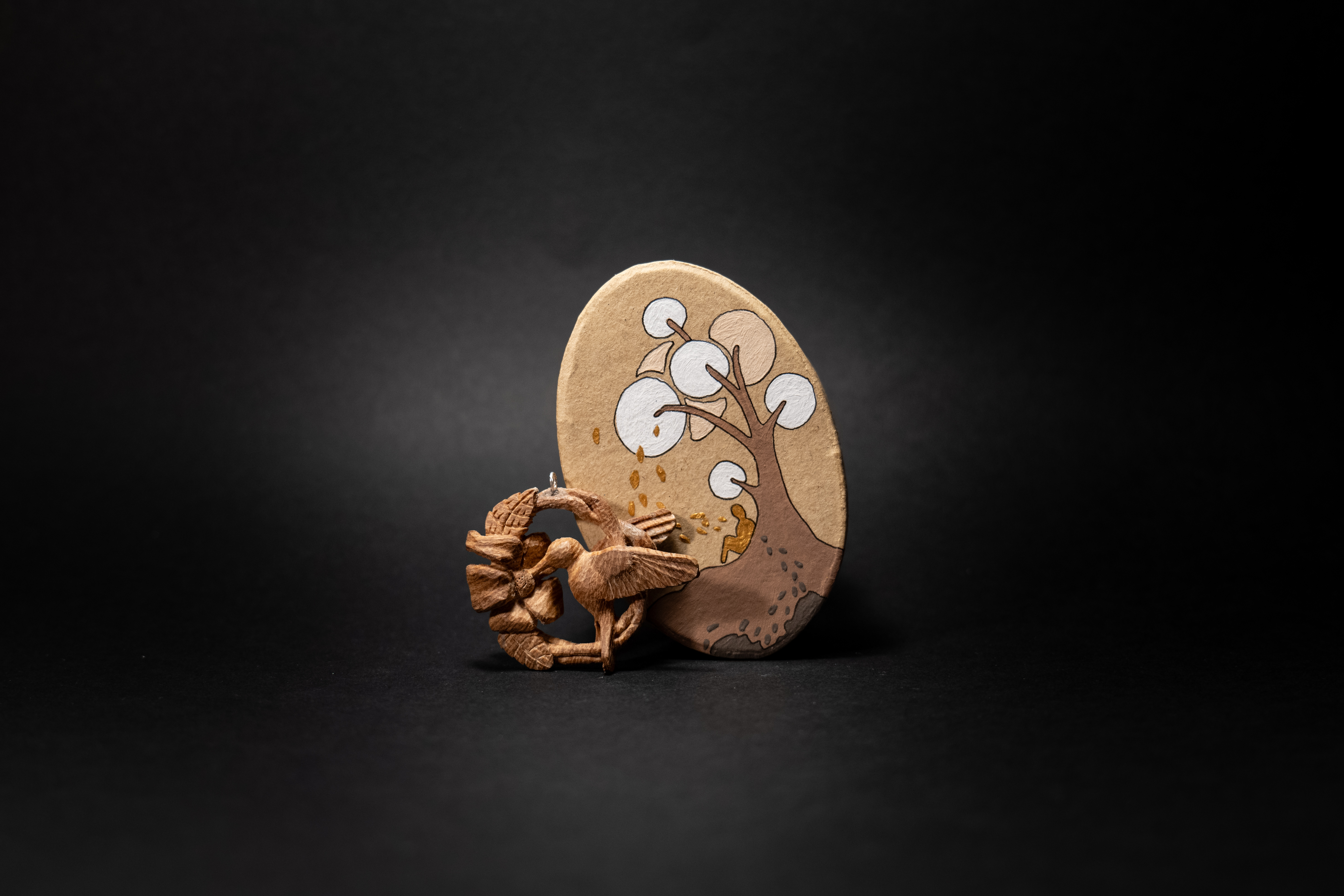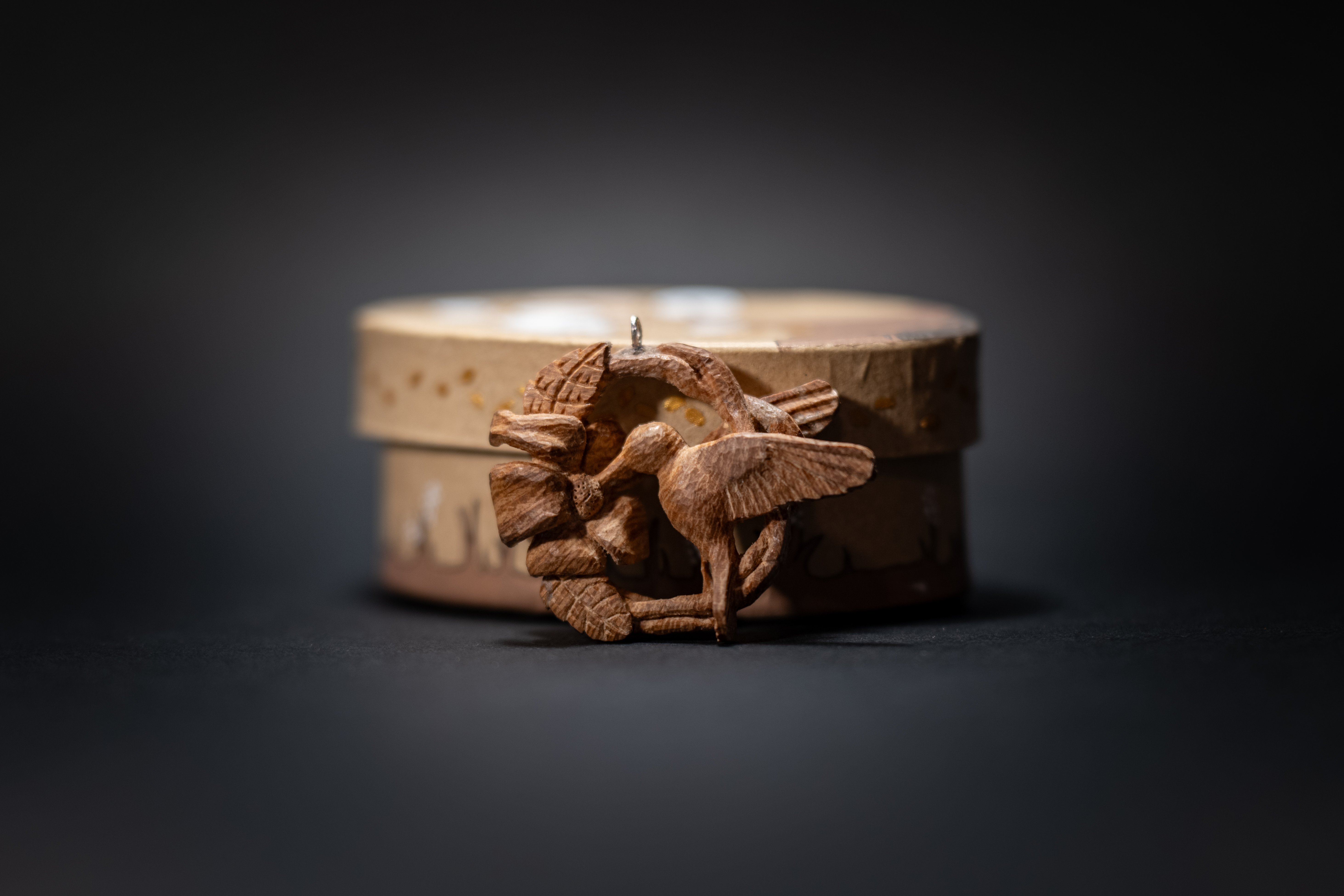 Individually designed and hand carved by knife, the Hummingbird wreath pendant is a unique piece of jewellery, a one-off piece of art never to be reproduced. Ideal as a gift for a loved one or as an heirloom item to pass down for generations to come.